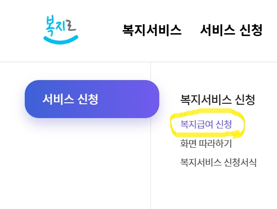 - 복지로 홈페이지 서비스 신청을 통해서도 가능